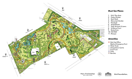 The verdant park with landscaped green spaces, towering trees and seasonal blooms spans across 18 hectares. It has well ordained walking trails, sitting areas and is home to historical monuments including the iconic Bara Lao ka Gumbad & Baradari which are proof of a fascinating past. Concerned authorities and councils are working towards offering basic as well as advanced amenities for visitors.